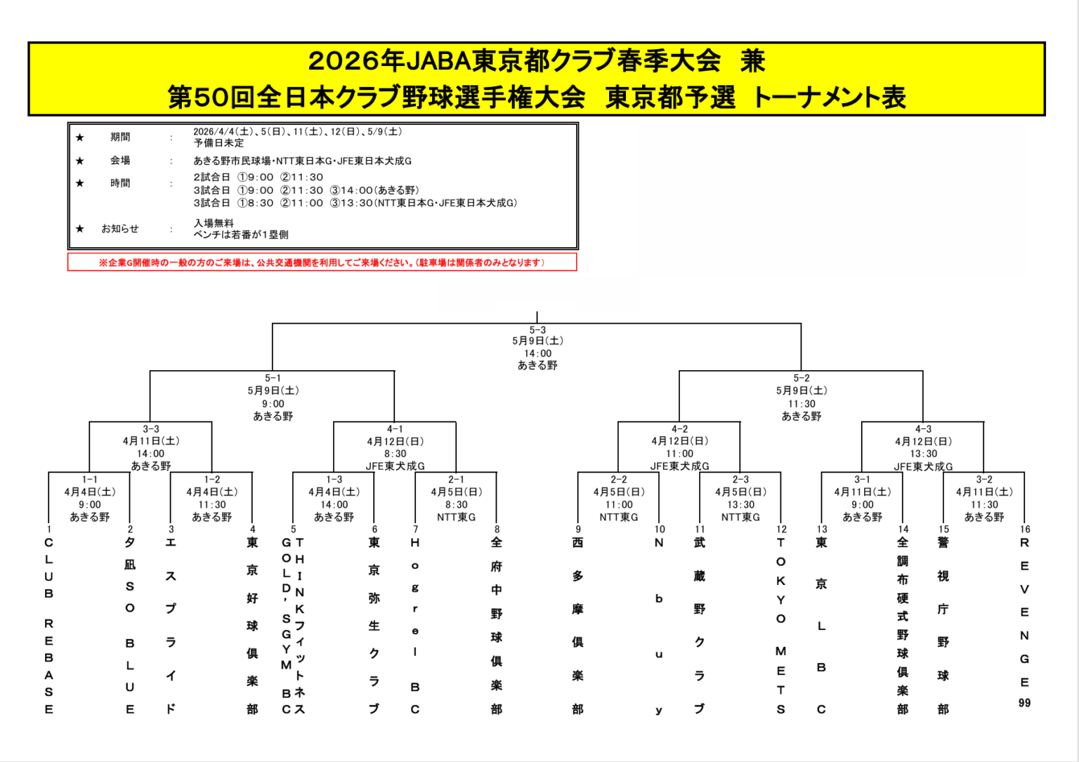 大会名:2026年JABA東京都クラブ春季大会 兼 第50回 全日本クラブ野球選手権大会 東京都予選