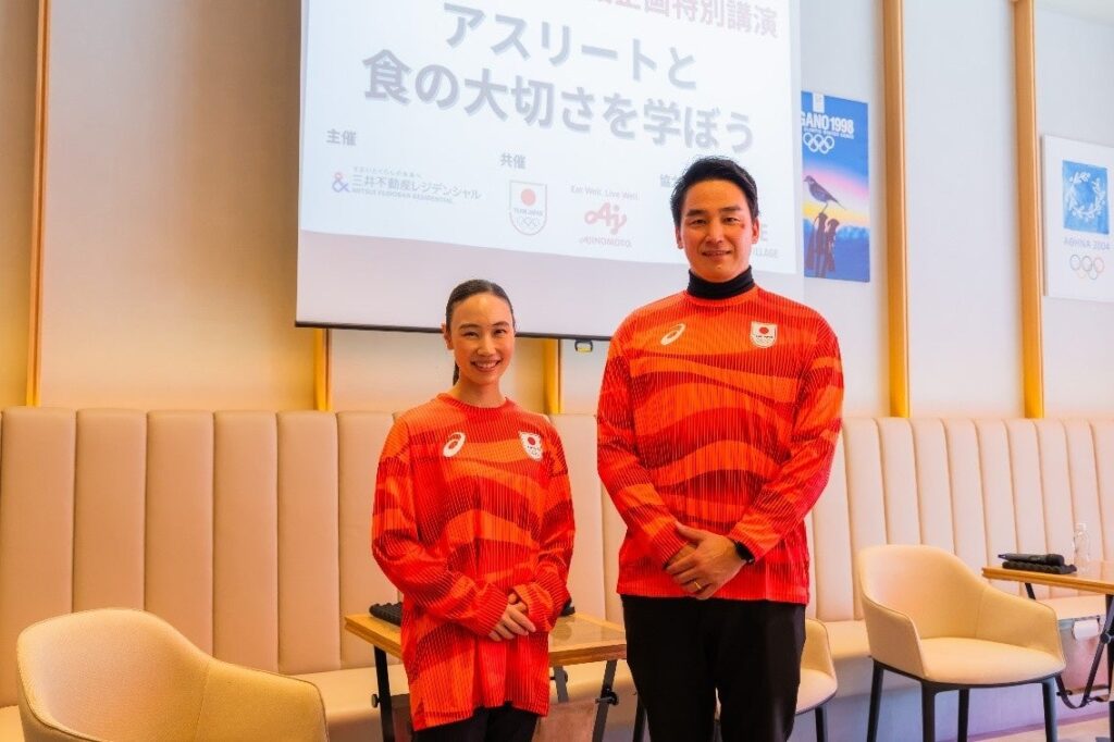 三井不動産レジデンシャルは、東京都中央区のHARUMI FLAG内「TEAM JAPAN 2020 VILLAGE」の「Cafe & Restaurant CENTRALE」で、「ミラノ・コルティナ2026冬季オリンピック TEAM JAPAN 応援フェア」を1月25日から2月28日まで実施しています。初日にはキックオフイベントとして特別講演を行い、松田丈志さんと中野友加里さんが登壇しました。