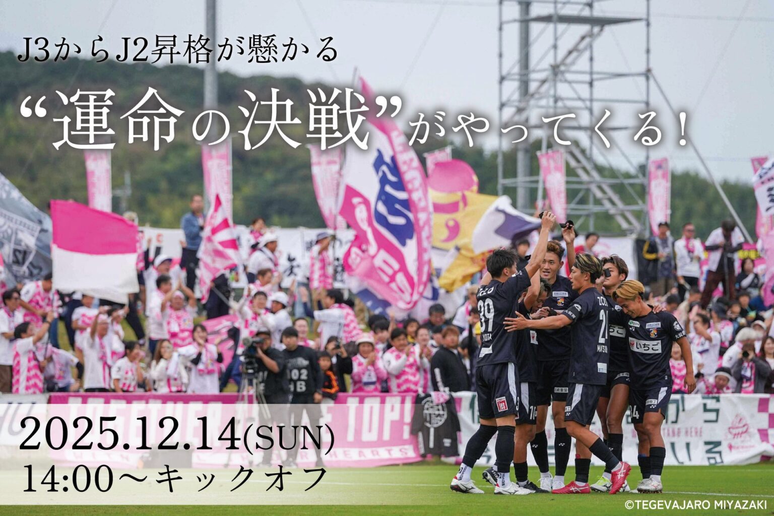 J2昇格が懸かるサッカーJ3・テゲバジャーロ宮崎とFC大阪の一戦が、2025年12月14日(日)14時キックオフで行われ、この試合を大型スクリーンで観戦するパブリックビューイングが宮崎県新富町で開催されます。会場は新富町福祉学習等供用施設(宮崎県児湯郡新富町上富田7485-14)、入場料は無料で先着順となります。