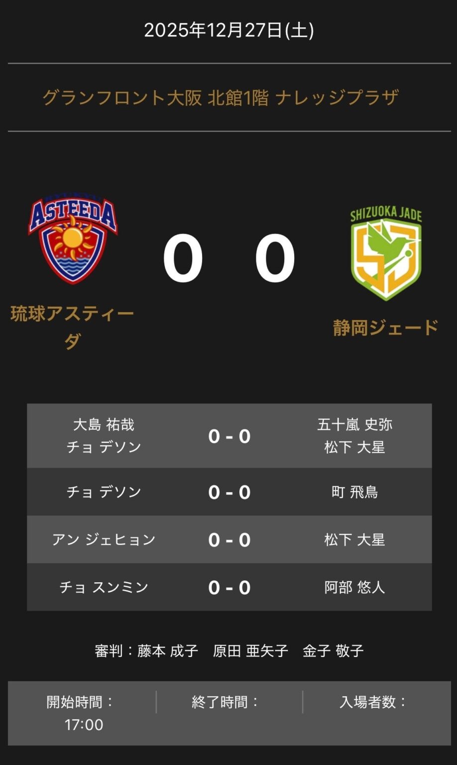 一般社団法人Tリーグは、ノジマTリーグ2025-2026シーズン公式戦として2025年12月27日に行われる「琉球アスティーダ vs 静岡ジェード」の対戦オーダーを公開しました。試合は配信とチケット導線が示され、視聴はYouTubeの生配信、観戦は公式チケットページから案内されています。