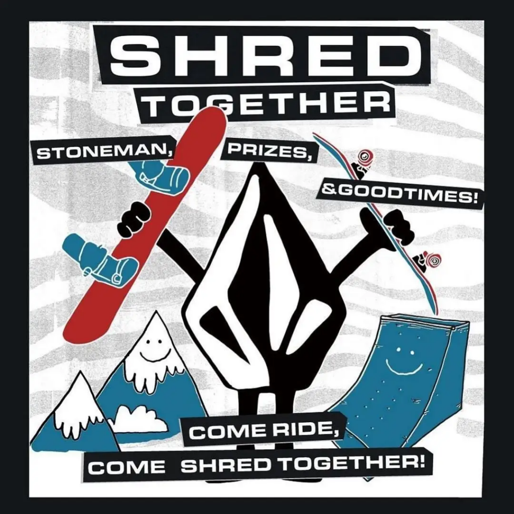 SHRED TOGETHER at 川場スキー場 2025:2025年1月18日(日)川場スキー場(群馬県)集合 7Fチケット売り場前/定員20名/参加無料(リフト券別)https://x.gd/volcom_shred