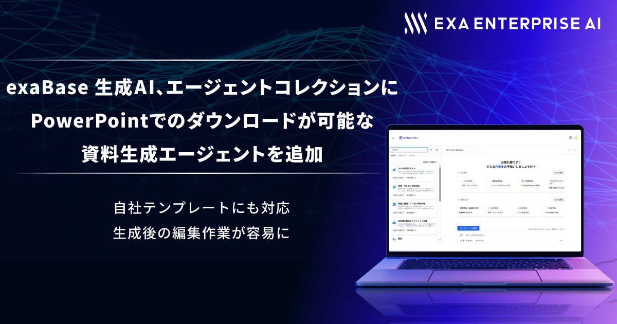 exaBase 生成AI、エージェントコレクションにPowerPointでのダウンロードが可能な資料生成エージェントを追加