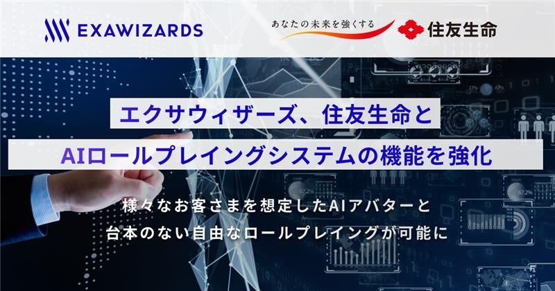 エクサウィザーズと住友生命は、営業職員向けのAIロールプレイングシステムを機能強化し、2025年12月23日から運用を開始しました。強化版では、顧客像を再現するAIアバターの選択と、生成AIを使った台本なしの自由会話に対応します。