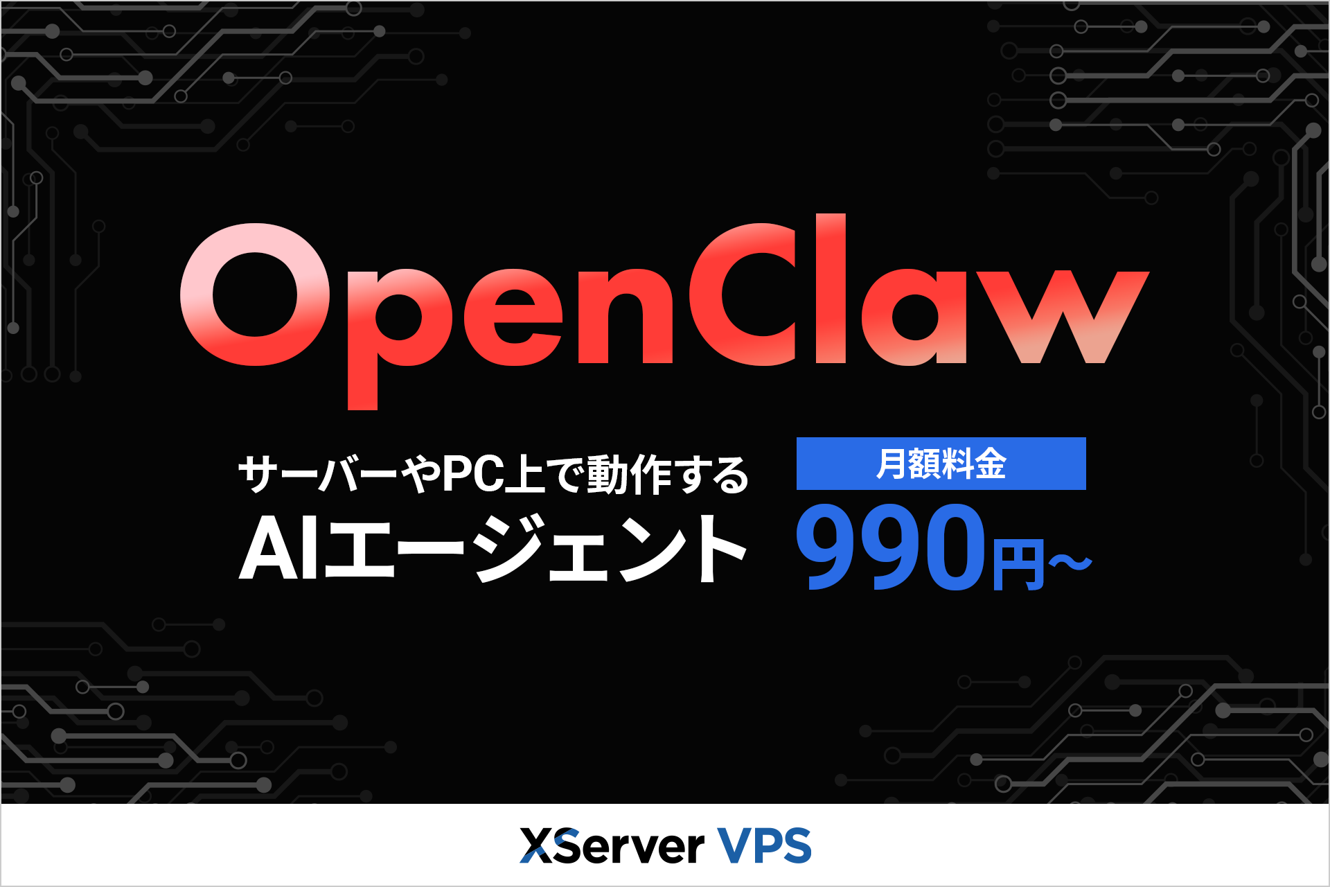 エックスサーバーは2026年2月10日、大阪市北区の同社が提供するVPS「XServer VPS」で、自律型AIエージェント「OpenClaw」のアプリイメージ提供を始めました。VPS利用料金のみで使え、初期費用は無料、月額料金は990円からです。
