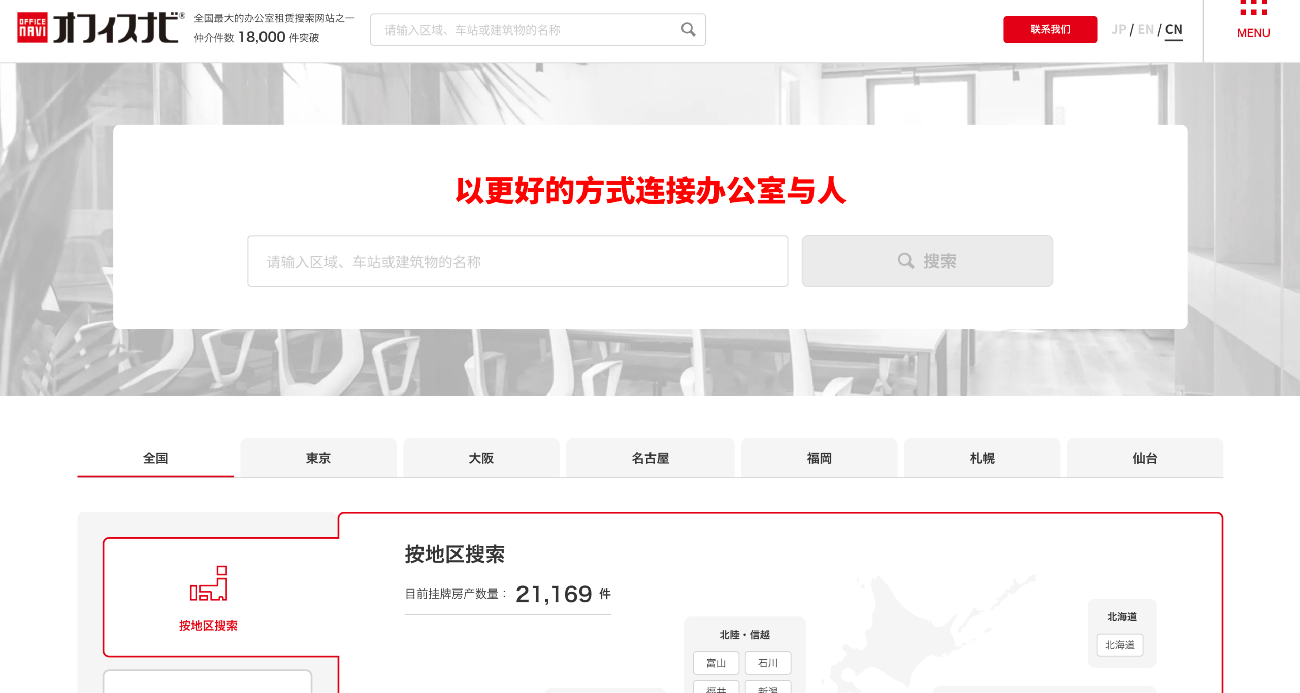 賃貸オフィス検索サイト「オフィスナビ」を運営するオフィスナビ(東京都港区)は2026年2月26日、中国語版サイトの提供を始めました。簡体字に対応し、エリア別・面積別で物件を検索できます。