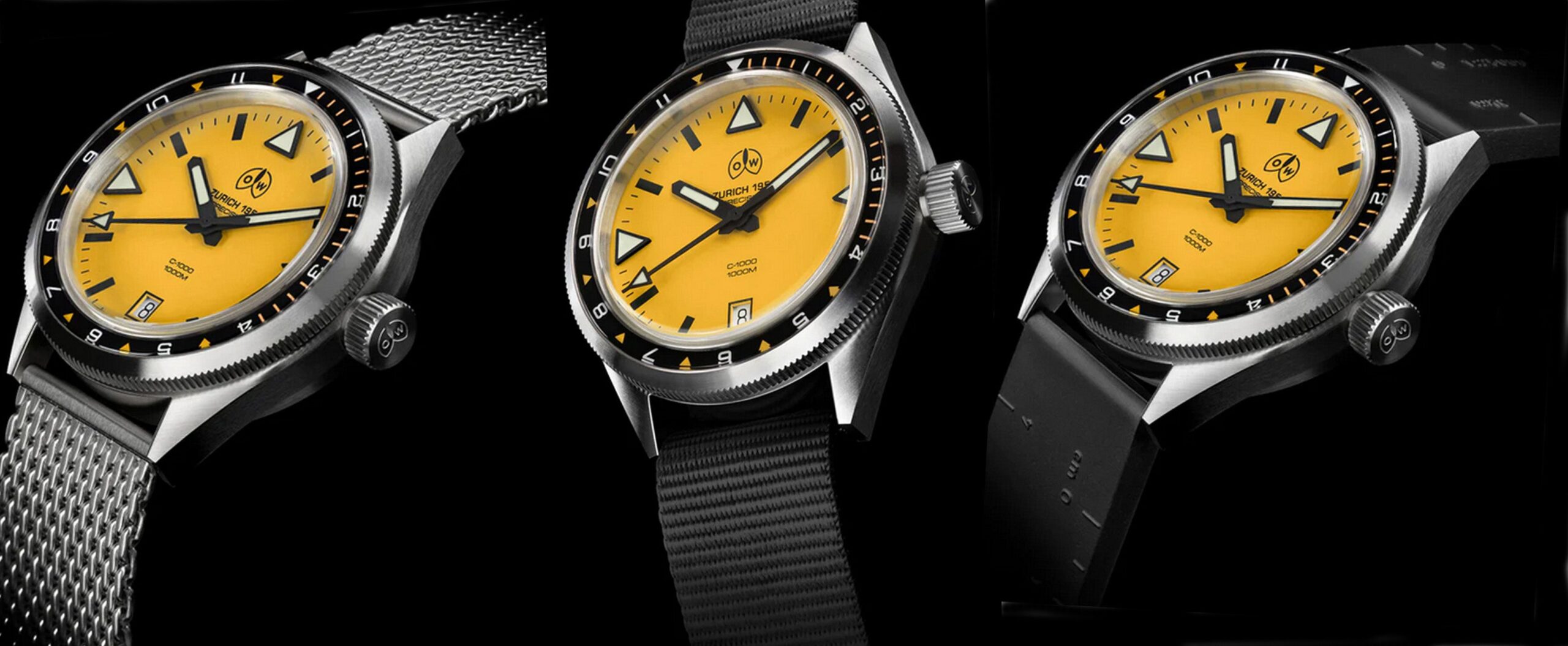 石岡商会(東京都豊島区)は、オレッヒ&ワイスの新作ダイバーズウォッチ「C1000 Y」を2026年3月下旬に発売します。防水性能は100気圧(1000m)で、ケースサイズは39.5mm×15.8mmです。価格はナイロンRAFストラップ仕様とラバーストラップ仕様が各39万6000円、SSメッシュブレスレット仕様が42万9000円です。保証期間は2年間です。