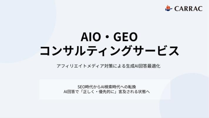 株式会社カラック(東京都港区)は2026年1月14日、生成AIの回答内で企業や商品がどう評価・言及されているかを可視化し、最適化まで支援する「AIO/GEOコンサルティングサービス」を始めました。同社の独自調査では、比較検討段階のクエリ/プロンプトで生成AIが参照する情報源の約46%がアフィリエイトメディア由来だとしています。