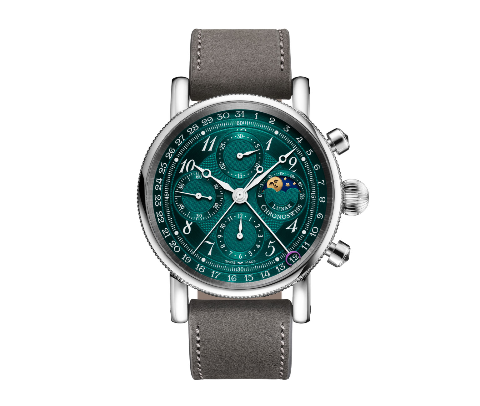 同モデルは、クロノグラフ(計測機能)、デイト表示、ムーンフェイズ(月齢表示)を統合した「ルナ・クロノグラフ」シリーズの新作に当たります。ケースはステンレススチールで直径41mm、厚さ15mm、10気圧防水に対応します。
