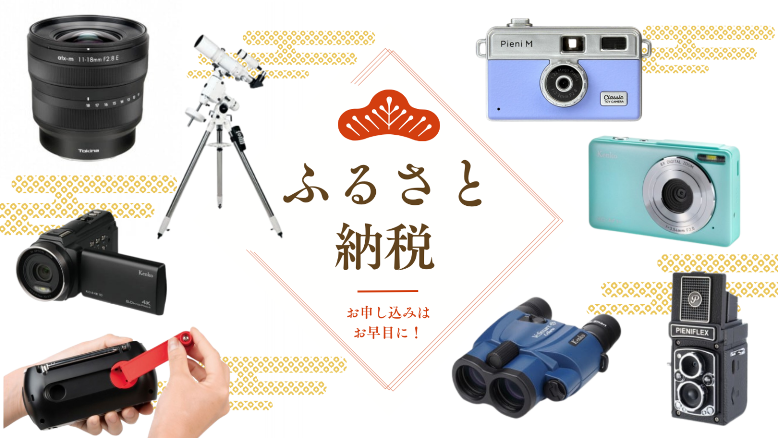 対象には、SNSやYouTubeで話題のトイカメラのほか、カメラ用レンズ、コンサートやスポーツ観戦で使いやすい双眼鏡、季節需要が見込まれる天体望遠鏡などを含み、複数カテゴリでラインアップをそろえます。ふるさと納税は、自治体へ寄付した金額に応じて返礼品を受け取れる制度で、年末は申込が集中しやすい点にも触れています。