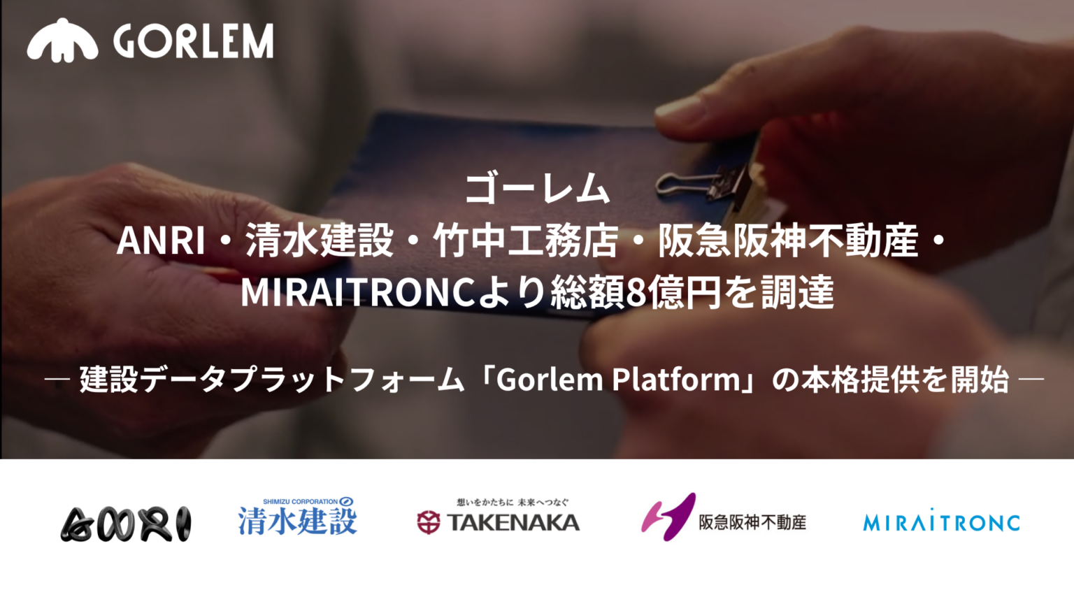 ゴーレム、ANRI・清水建設・竹中工務店・阪急阪神不動産・MIRAITRONCより総額8億円を調達