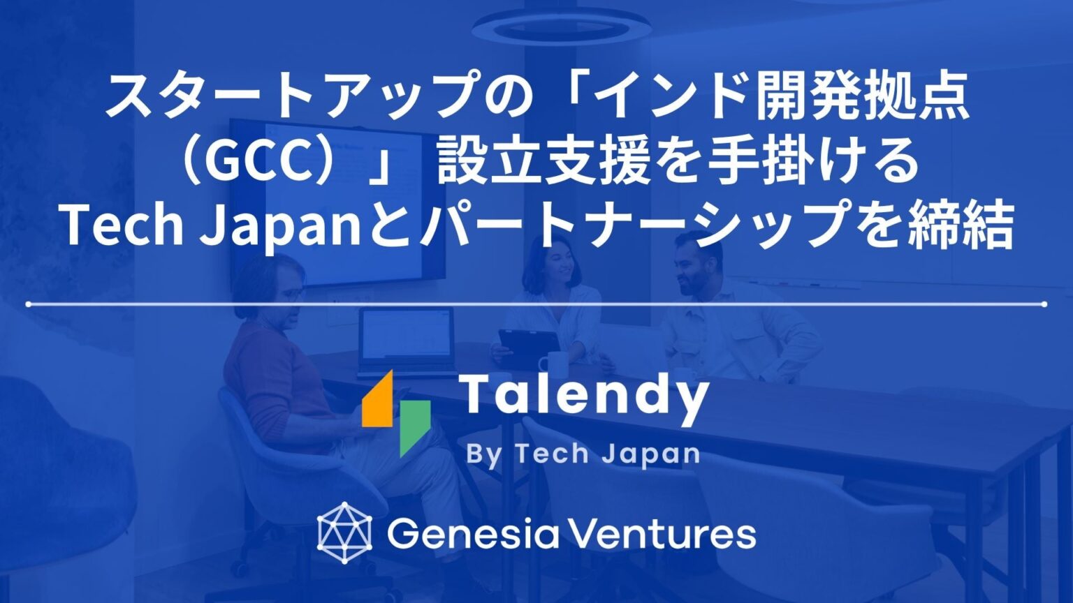 シードVCのジェネシア・ベンチャーズ(東京都渋谷区)は2026年2月24日10時30分、スタートアップのインド開発拠点(GCC)設立を支援するTech Japanと、GCCの設立・運営支援に関するパートナーシップを結びました。支援にはBeyond Next Venturesとリブライトパートナーズも関与します。