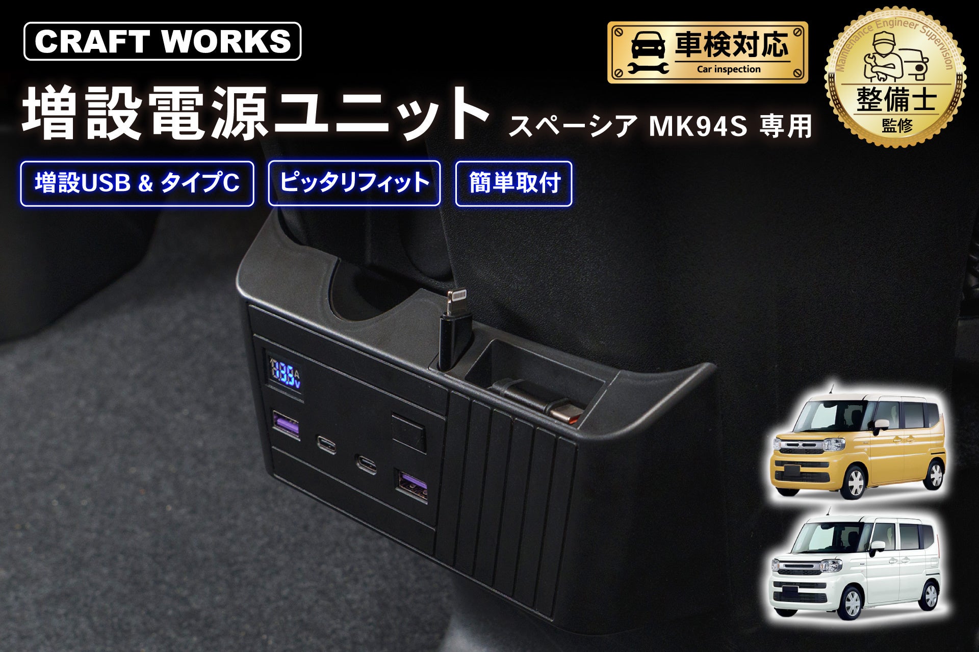 Fun Standard株式会社のカーアクセサリブランド「CRAFTWORKS」は、スズキ「スペーシア/スペーシアカスタム」(MK54S/MK94S)専用の増設電源ユニットの在庫が入荷した。参考販売価格は5,980円で、時期やECモールにより変動する。