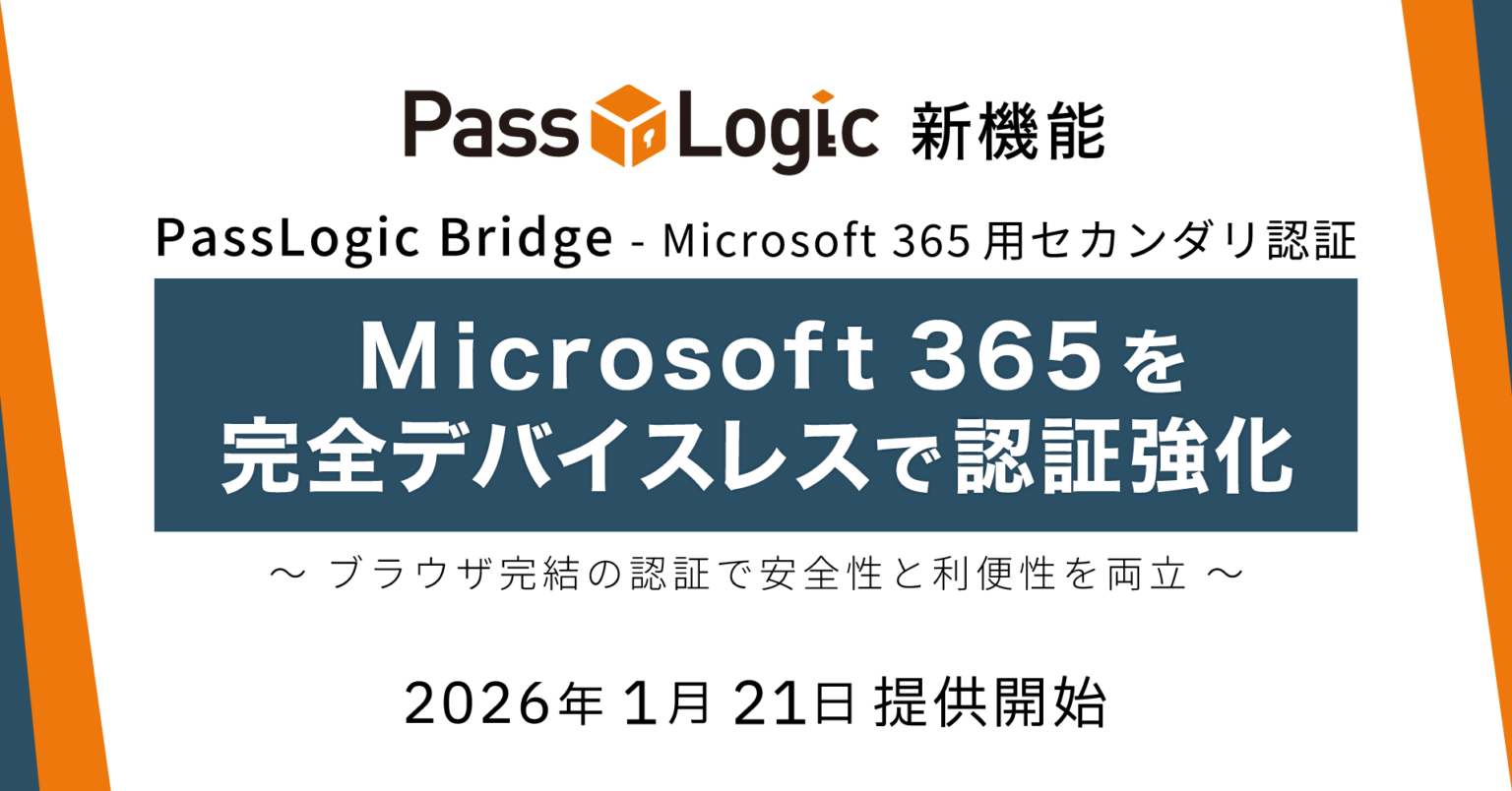 パスロジは2026年1月21日、Microsoft 365のサインインを外部デバイスなしで強化する新機能「PassLogic Bridge – Microsoft 365用セカンダリ認証(Bridge M365)」の提供を始めました。Microsoft Entra IDでのパスワード認証後に、ブラウザ上で同社のマトリックス方式による追加認証を行います。クラウド利用の拡大で認証強化の重要性が増す一方、多要素認証はスマートフォンやハードウェアトークンの携行・管理が負担になり、持ち込み制限のある現場では導入しにくい課題がありました。Bridge M365はEntra IDのセカンダリ認証として動作し、EAM連携によりMicrosoft 365のユーザー情報をそのまま利用できるため、SAML連携で必要になりがちなユーザー整合や運用作業の負担軽減につながるといいます。マトリックス表から利用者が決めたパターンで数字を読み取りワンタイムパスワードを生成する仕組みで、同社は安全性と利便性の両立を狙います。今後はデバイス前提の認証が難しい組織で採用が進むかが焦点です。