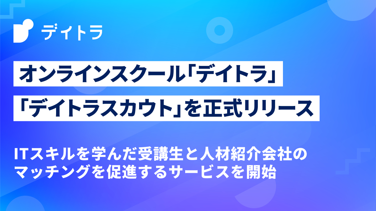 オンラインスクール「デイトラ」を運営するデイトラ(東京都豊島区)は12月15日、受講生・卒業生限定で利用できるIT人材マッチングサービス「デイトラスカウト」を始めた。人材紹介会社は初期費用・月額固定費なしで利用でき、費用は面談が実施された場合にのみ発生する仕組みという。対象人材は、累計3万人以上の卒業生を出した同スクールの実践カリキュラム修了者に限る。求職者側はプロフィール登録により複数社からスカウトを受けられ、求人探索の負担軽減を狙う。人材紹介会社側は候補者情報の取得や面談前リマインド、初回面談同席などの運用支援を受けられるとしている。今後は受講生・卒業生のキャリア支援を拡充し、IT人材不足の課題解決につなげる方針。