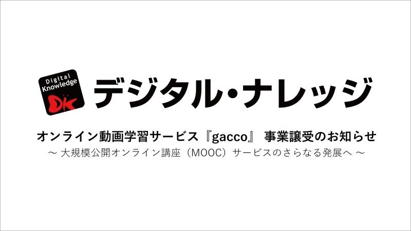 株式会社デジタル・ナレッジ、オンライン動画学習サービス「gacco」の事業譲受に関するお知らせ