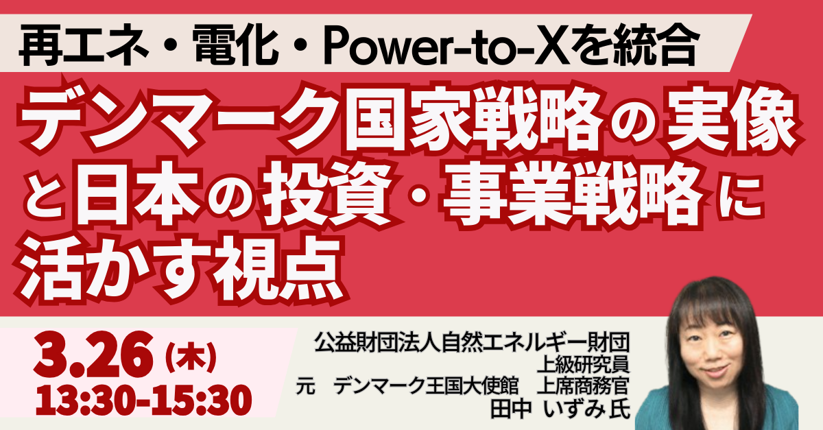 【JPIセミナー】「再エネ・電化・Power-to-Xを統合したデンマーク国家戦略の実像と日本の投資・事業戦略に活かす視点」3月26日(木)開催