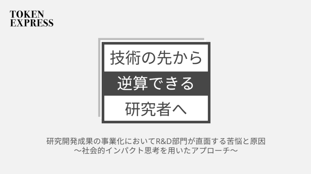 トークンエクスプレス(東京都豊島区)は2026年2月17日、企業の研究開発(R&D)成果を事業化につなげるためのホワイトペーパーを無料で公開しました。題名は『研究開発成果の事業化においてR&D部門が直面する苦悩と原因~社会的インパクト思考を用いたアプローチ~』です。