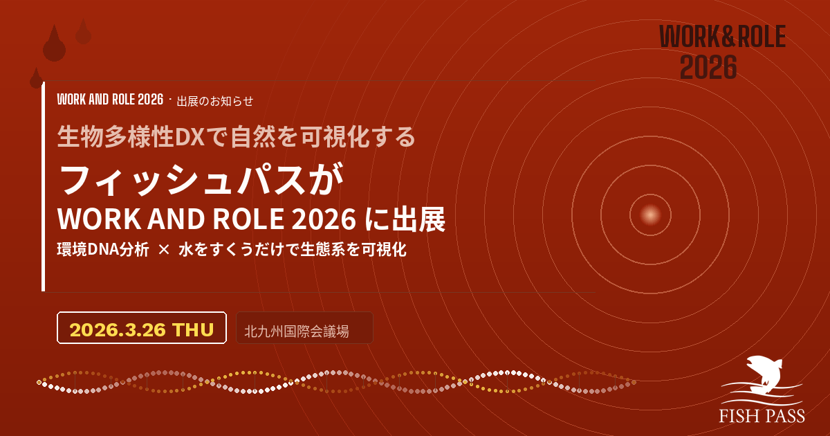 株式会社フィッシュパス、北九州発のイノベーションカンファレンス「WORK AND ROLE 2026」に出展〜生物多様性DXを実現する環境DNA分析、水をすくうだけで生態系を可視化する特許技術を展示〜