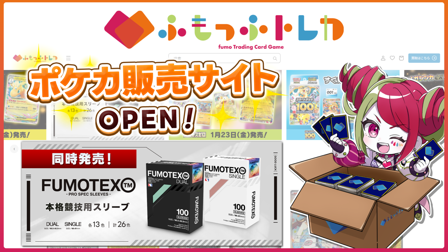 株式会社フェルマー(東京都目黒区、代表取締役:松本努)は2026年3月12日、ポケモンカードゲームの販売サイト「ふもっふトレカ」をオンラインで開設し、競技用カードスリーブ「FUMOTEX(フモテックス)」をSINGLE13色・DUAL13色の計26種類で同時に販売開始しました。