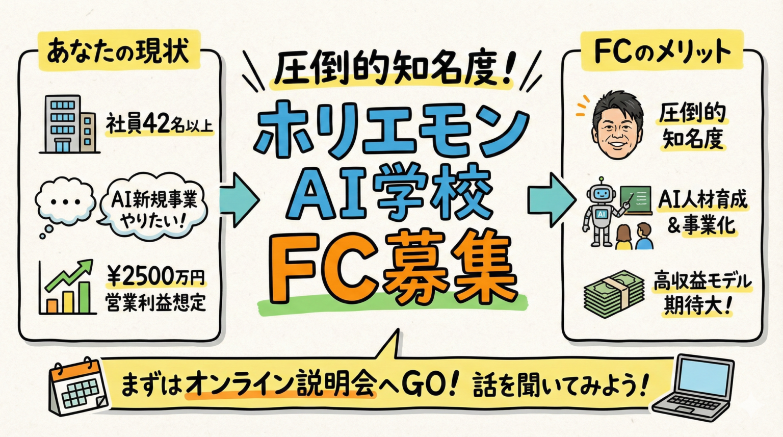 AI関連で新規事業をやりたい社員42名以上の経営者向け、ホリエモンAI学校フランチャイズ加盟企業を募集、説明会は2月12日(木)14時から
