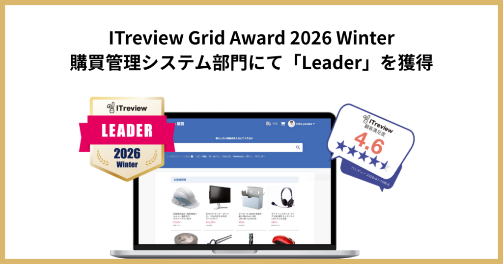 株式会社Leaner Technologies(東京都品川区)の購買プラットフォーム「リーナー購買」が、「ITreview Grid Award 2026 Winter」の購買管理システム部門で「Leader」に選ばれました。選定はITreview上のユーザーレビュー約15.1万件を基に行われ、顧客満足度と認知度の双方が高い製品が対象です。