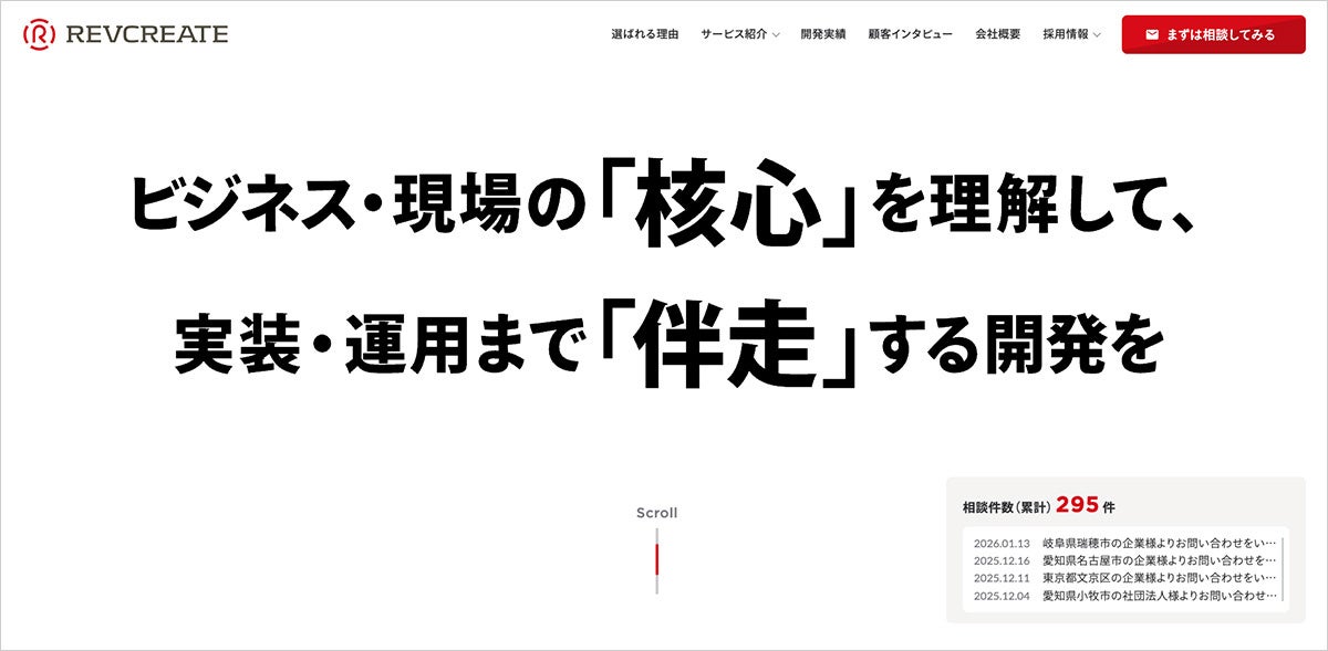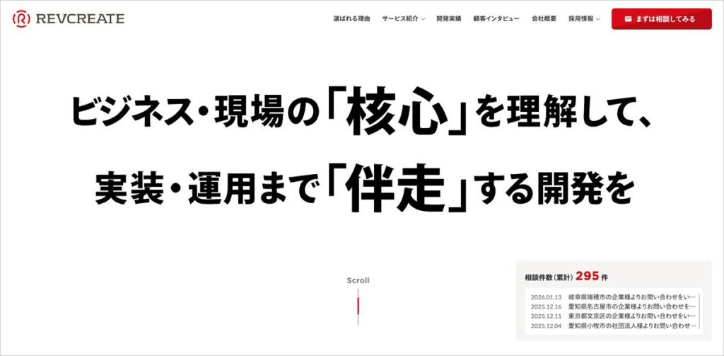 レブクリエイト(本社:愛知県名古屋市、代表取締役:杉崎公一)は2026年2月9日12時、コーポレートサイトを全面リニューアルして公開しました。事業のIT課題に共に挑む「伴走型のシステム・アプリ開発会社」という立ち位置を、より明確に伝えるのが狙いです。