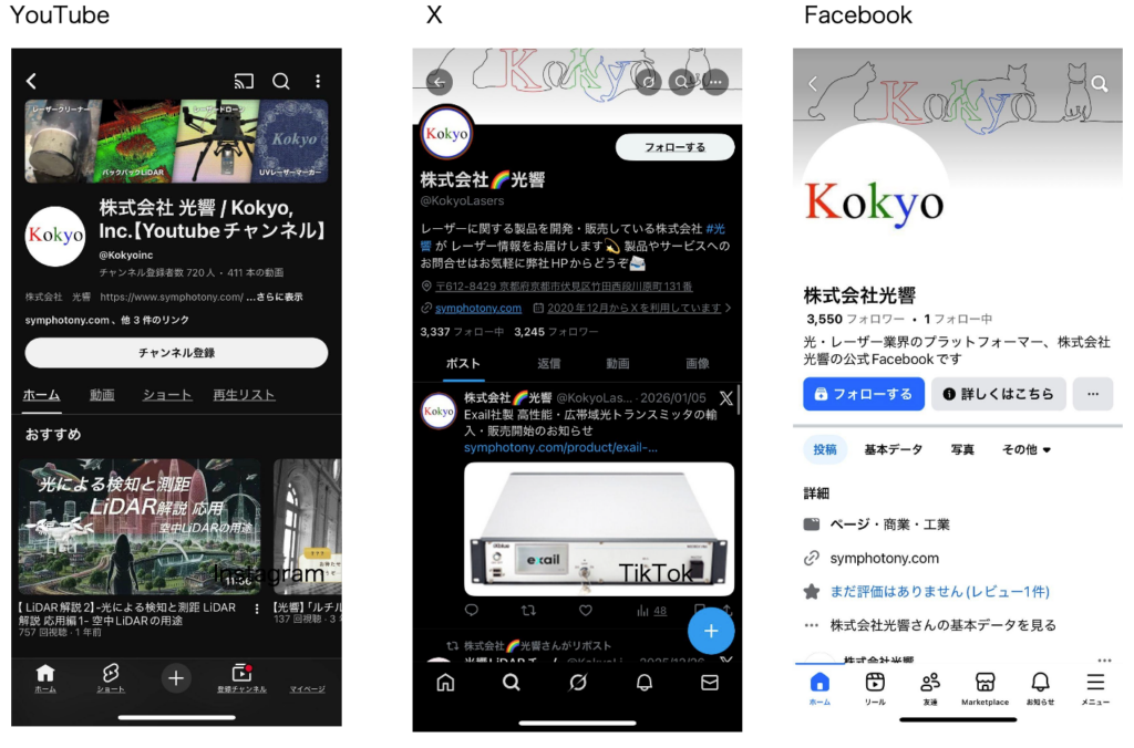 株式会社光響(京都市)は2026年1月21日、TikTok公式アカウント「@kokyo_inc」を新設した。レーザー・光学関連の製品や技術情報、展示会・イベントの様子などを短尺動画で届ける。