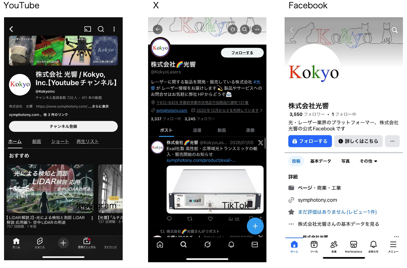 同社はこれまでYouTube、X、Facebook、Instagramで情報発信を行ってきた。新アカウントの追加により、複数SNSを連携させた露出拡大を狙う。既存SNSとしてYouTubeは1アカウント、Xは1アカウントを運用している。