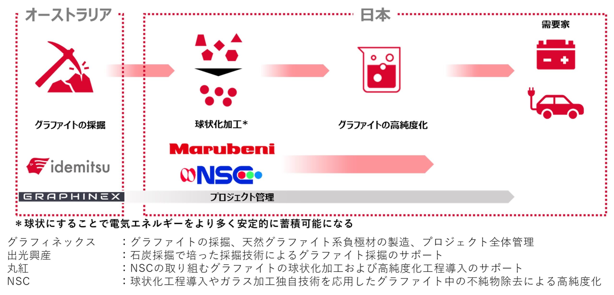 リチウムイオン電池用天然グラファイト系負極材の供給網構築に向けグラフィネックス、丸紅、NSCと協業契約を締結