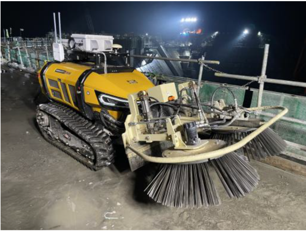 前田建設工業は、ダム工事でコンクリート打設後に行う「グリーンカット作業(レイタンス除去)」を自動化する「自動グリーンカットマシン」を開発し、2025年8月に岐阜県発注の内ケ谷ダム本体工事で試行しました。無線LAN環境下での自動施工と品質確保、遅延剤併用による休工日前日の打設時の品質確保を確認したとしています。グリーンカットは、打設面の脆弱な薄膜を除去して打ち継ぎ面の品質を確保する工程ですが、翌日に広い面積を処理する必要があり手作業の負荷が大きい点が課題でした。新マシンは英国McConnel社のROBOCUTをベースに、専用アタッチメントやGNSS、Webカメラ、制御PCなどを組み合わせ、自動施工と遠隔施工を切り替えられるといいます。型枠近傍など機械が処理しにくい部分は、打設直後に型枠から約30cm範囲へ遅延剤を散布し、後日に水洗いとハンドポリッシャーで仕上げる方法を採用しました。導入により年間施工可能日数を約1.3倍に増やし、工期短縮や省人化、施工費低減につなげる考えで、今後は品質判定まで含めた一連の自動化に向けて実証を続けるとしています。