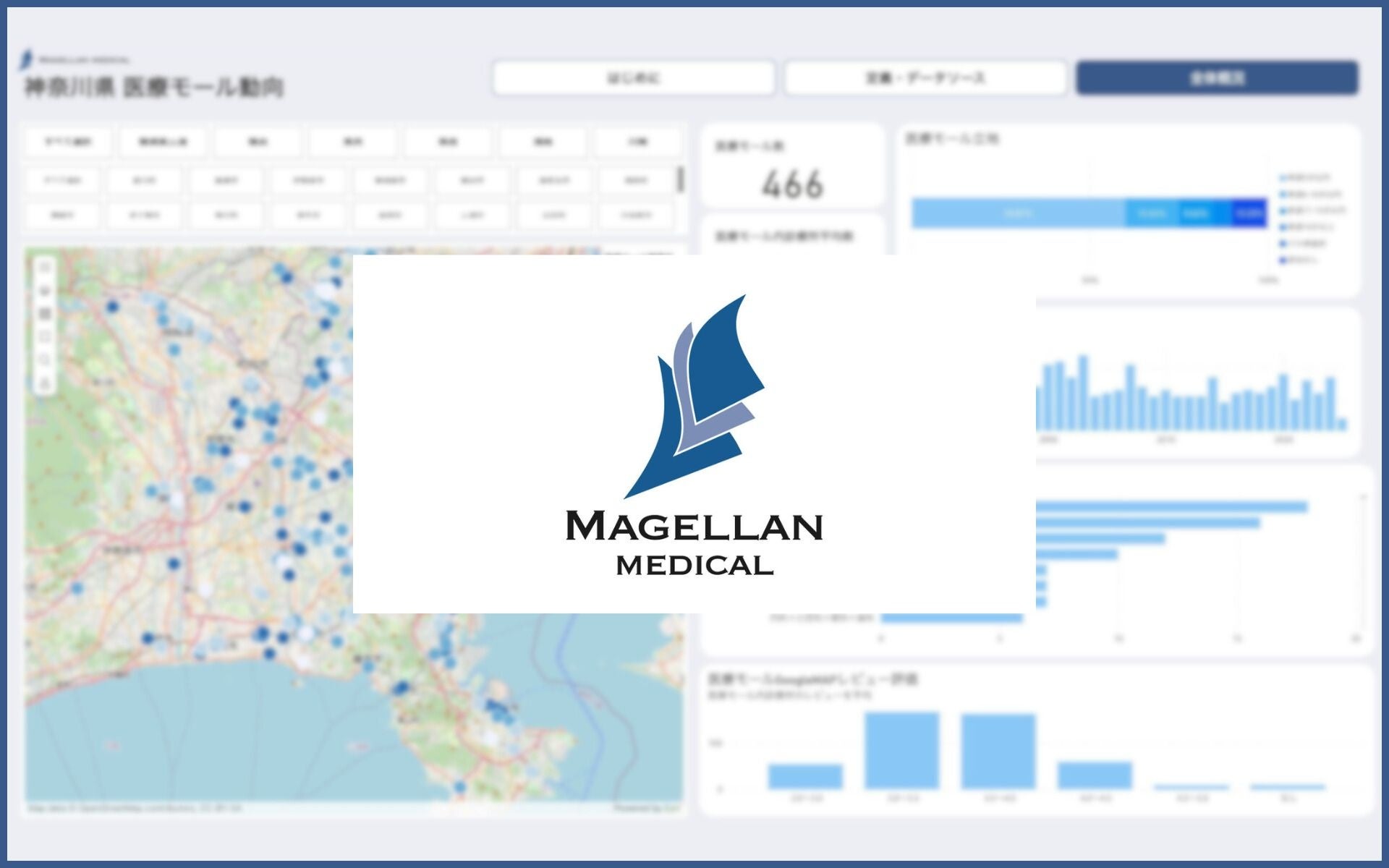 医療モール経営コンサルを手がける株式会社マゼランメディカル(東京都品川区)は、神奈川県内の医療モールの分布や特徴を地図上で分析できる「医療モール市場動向ダッシュボード 神奈川県版(β版)」の一般公開を始めました。国内の医療モールを対象にインタラクティブな市場動向ツールを公開するのは初めてで、当面は無料で利用できます。