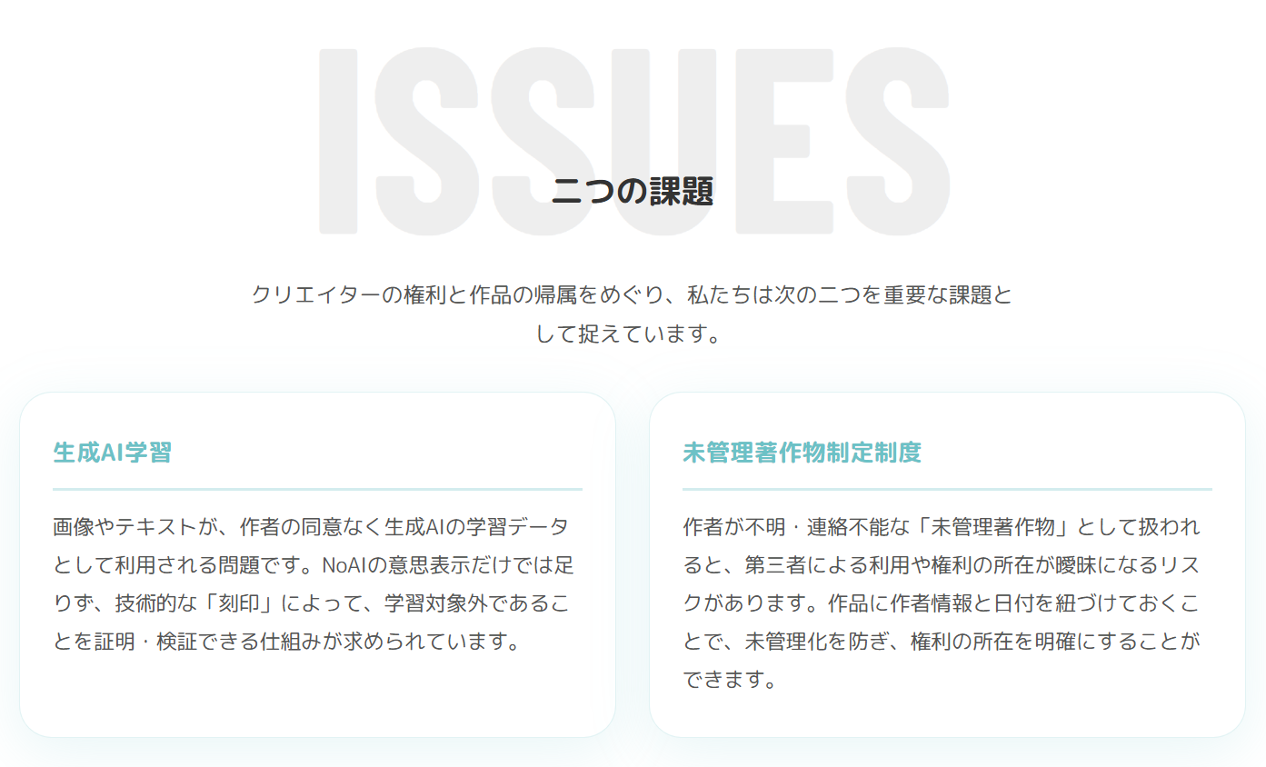 狙いは、生成AIの学習問題への対策と、2026年4月に運用が始まる未管理著作物裁定制度への備えです。権利者や連絡先が紐づかない画像は「連絡がつかない作品」と扱われるリスクがあるため、権利者不明状態を避ける設計としています。なお同社は、PicDNAは権利帰属を法的に確定する証明ではなく、「いつ、誰が投稿したか」の記録保全だと位置づけます。