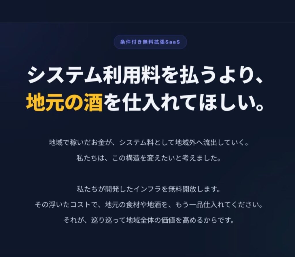 FARM8(新潟県長岡市)は12月23日、地域商品を扱うほどクラウド機能が無料で解放されるSaaSモデル「Local Pass Cloud」を公開し、第1弾として飲食店向けQRサービス「QR8」の提供を始めました。対象は新潟地酒で、店舗が登録した取扱い酒蔵数によりランクが変動します。0蔵でもWiFi案内、レビュー誘導、呼び出し、順番待ち、ポイントカードの5機能は無料で利用できます。1蔵以上で全機能、5蔵以上で上限拡大、10蔵以上でさらに上限を引き上げます。取扱状況は一般ユーザーに公開されます。月額課金で機能が決まる従来型と異なり、「地域への貢献度」を評価軸に置くのが特徴です。今後は新潟地酒以外の地域商品や他地域への拡大も検討するとしています。