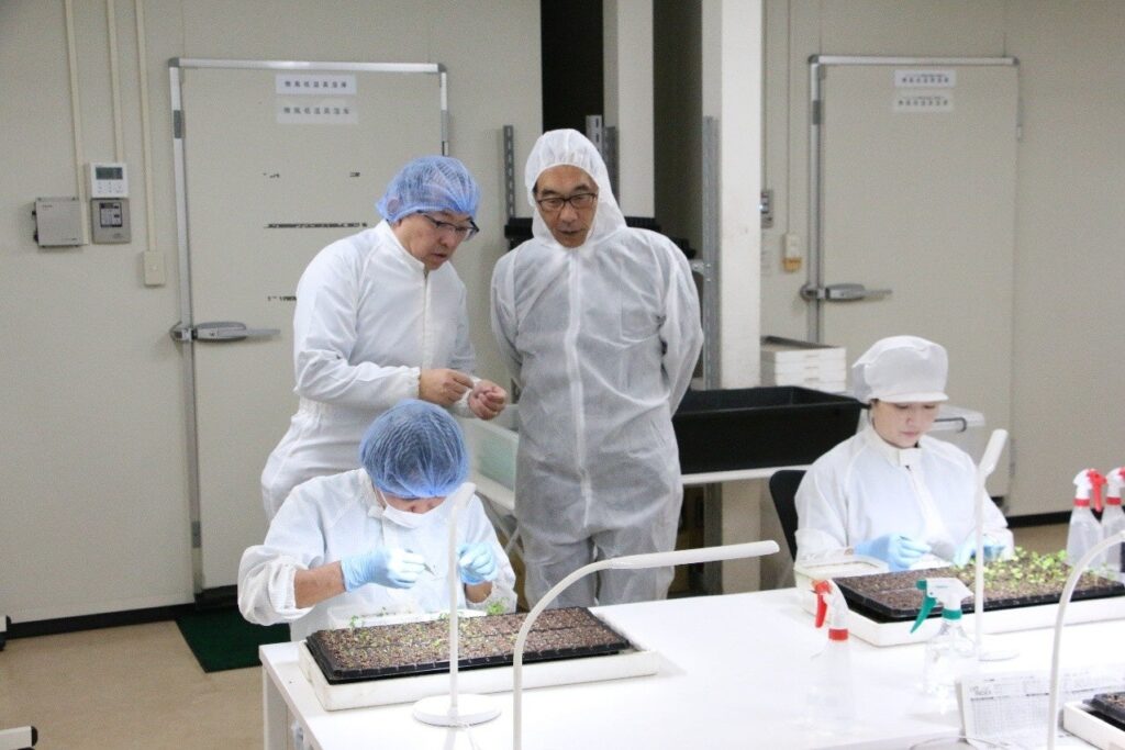 視察では、第一実業が手がけるイチゴ培養苗の生産プロセスや、環境を制御して安定生産を図る閉鎖型植物工場の仕組みについて、担当者が説明しました。閉鎖型植物工場は、天候の影響を受けにくいことが特徴で、収量や品質の安定につながるとされています。また、埼玉県オリジナル品種「あまりん」「べにたま」などの出荷拡大に向け、企業と自治体、地域との連携方針について意見交換が行われました。
