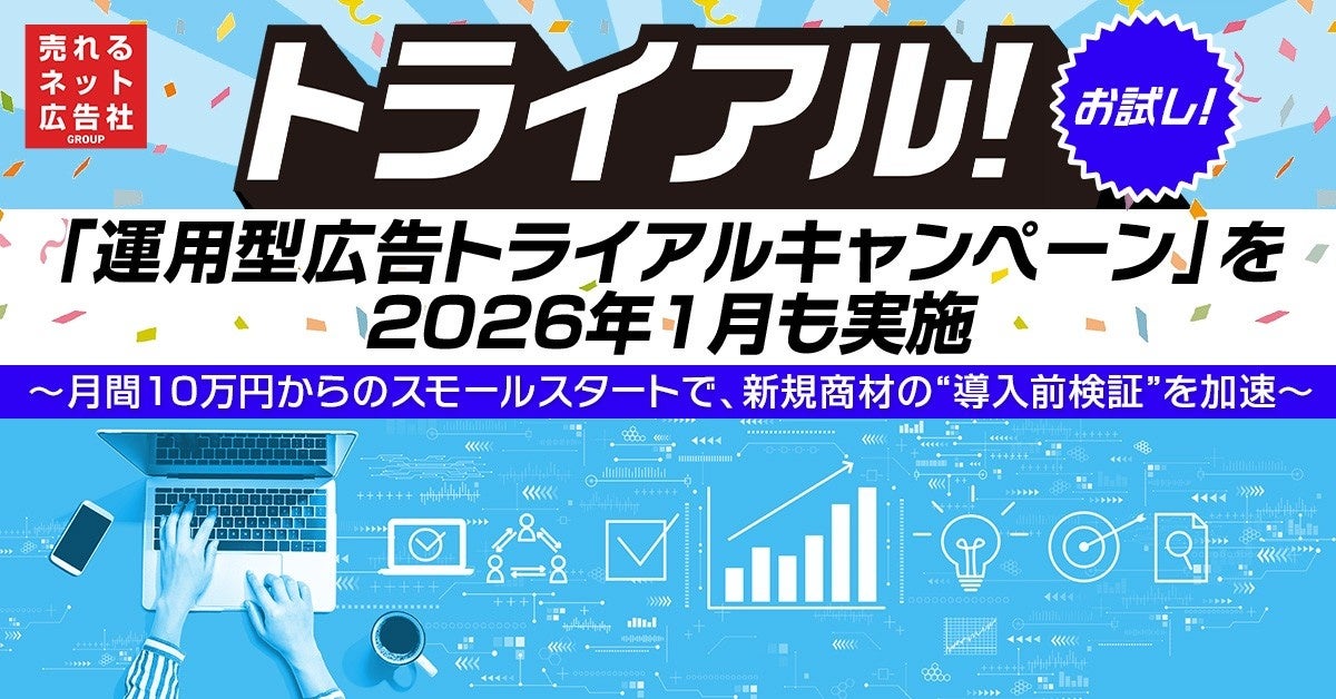 売れるネット広告社グループ(東証グロース:9235)の連結子会社・売れるネット広告社は、2025年12月まで実施していた「運用型広告トライアルキャンペーン」を受注反響を理由に2026年1月も継続します。月間10万円から運用型広告を始められる枠組みで、新規商材の導入前に数値検証を行いたい事業者の需要に対応します。近年は「立ち上げ前に小額で反応を見たい」「運用型広告が自社商材に合うか確かめたい」といった声が増える一方、一定規模の予算が壁になるケースがあるといい、同社は初期設計から配信開始、レポートと振り返りまでを一気通貫で支援します。支援内容はKPI(重要業績評価指標)のすり合わせ、計測設定、アカウント構築に加え、媒体はMeta広告(Facebook/Instagram)などを中心に目的に応じて設計し、初月の広告用バナー制作を同社が用意する場合もあります(詳細は個別提案)。トライアルで得た訴求軸や媒体適性などの知見を整理し、通常運用(同社想定は月額100万円〜)へ段階移行しやすい導線も特徴です。連結業績への影響は現時点で軽微としつつ、2026年7月期の連結業績にはプラス寄与を見込んでおり、今後はスモールスタートから本格運用までの一貫支援を強化していく方針です。