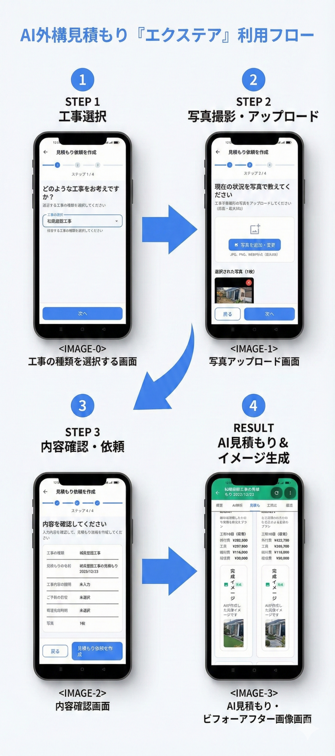 外構リフォームでは「完成図が想像できない」「相場が分からない」ことが検討中断の要因になりやすく、エクステアは現場写真へ商品イメージを合成して可視化します。費用は施工面積をAIが解析し、市場価格を基に松・竹などのプランで概算提示し、対面営業を前提としない設計です。さらに名古屋のオペレーションセンター(愛知県名古屋市)が見積書作成や日程調整など事務を担い、職人が施工に集中しやすい体制をうたいます。今後は東海から全国展開し、地域別価格データの学習で見積もり精度を高め、設計図・施工指示書・契約書の生成機能開発も視野に入れます。