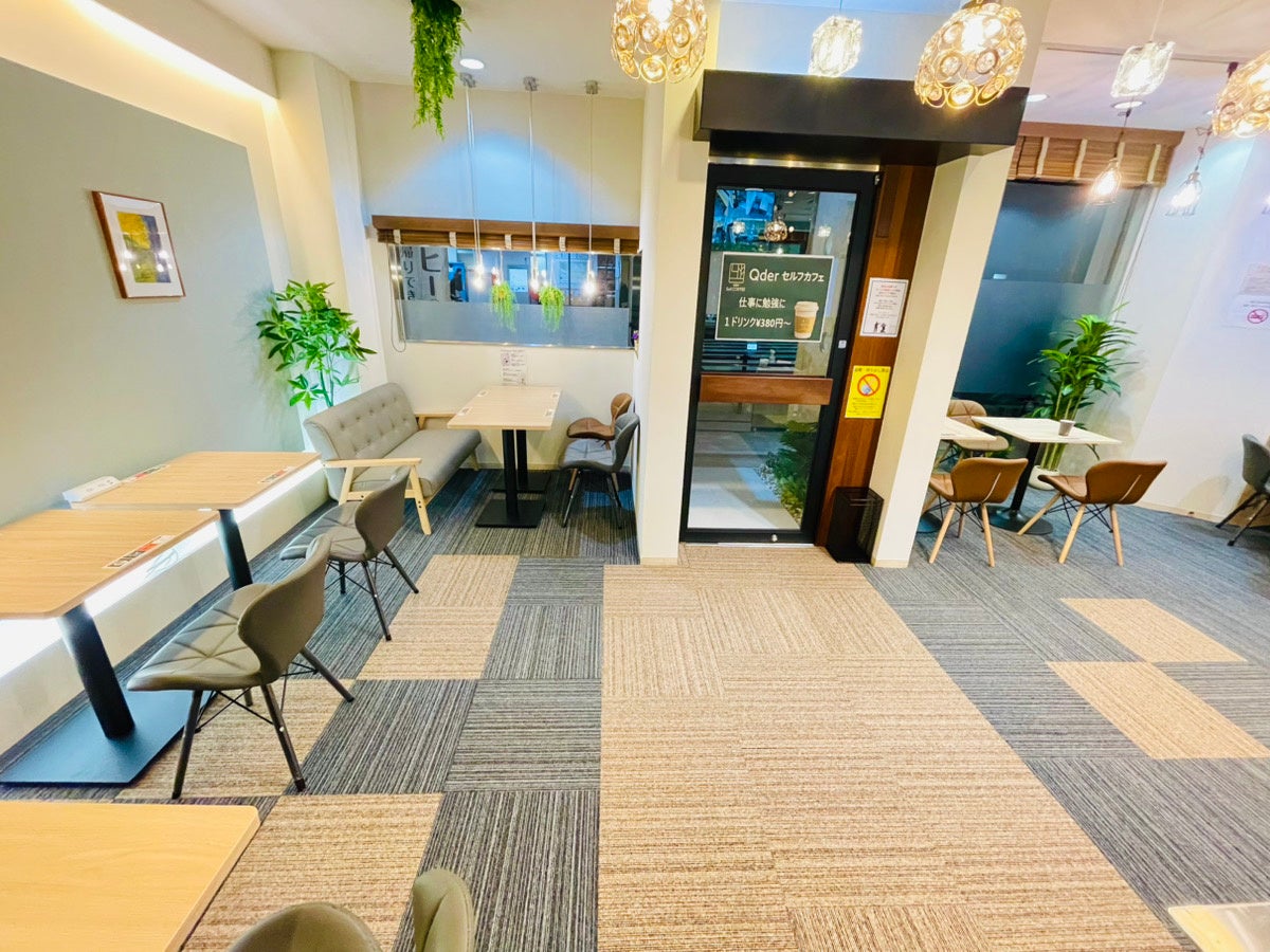 店舗:Qderセルフカフェ 大阪針中野店(営業時間:24時間、設備:WiFi / 電源 / キャッシュレス決済)