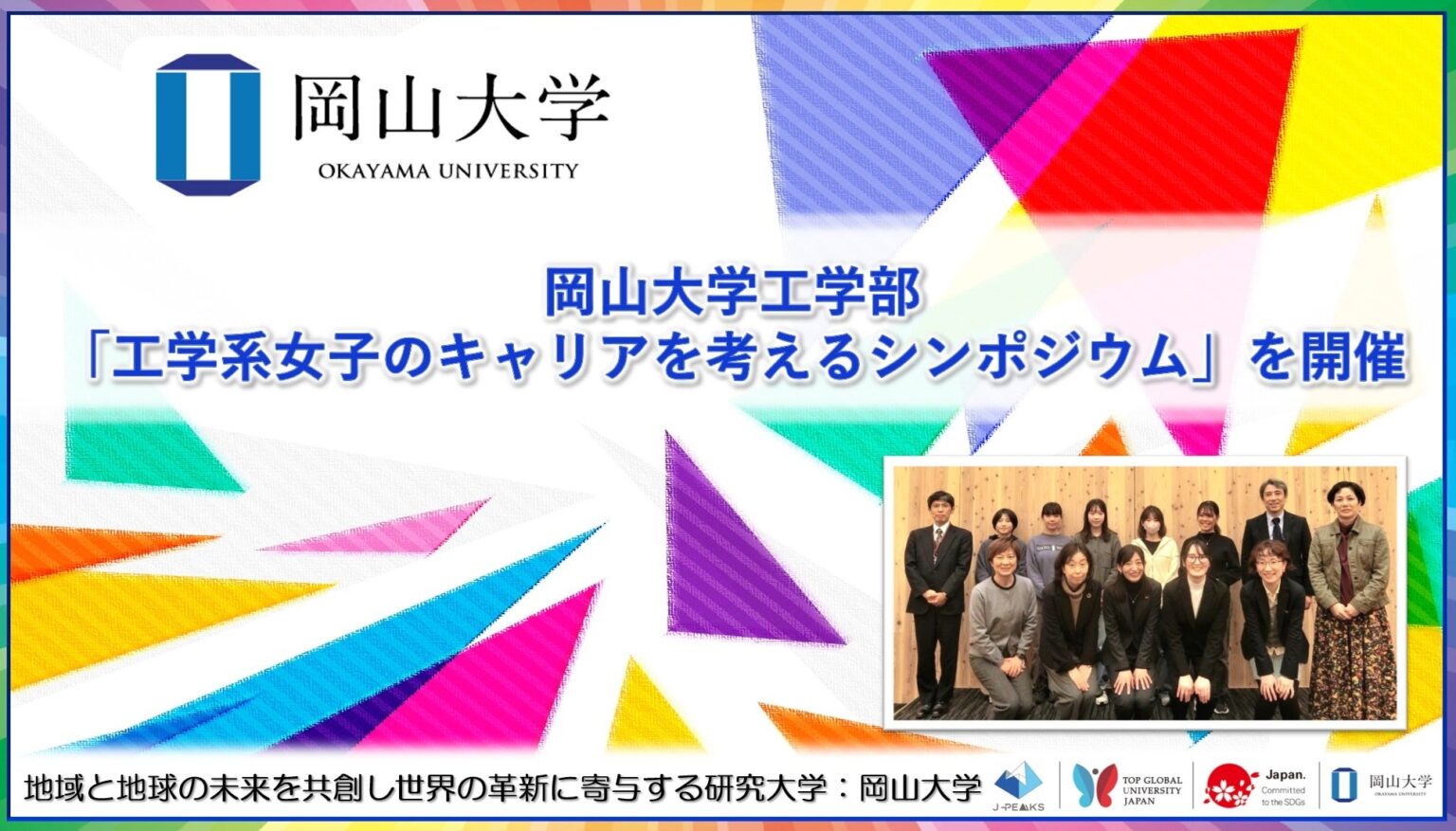 岡山大学工学部は2025年12月21日、岡山市北区の津島キャンパス「共育共創コモンズ(OUX)」で「工学系女子のキャリアを考えるシンポジウム」を開きました。高校生を中心に約60人が参加し、講演、テーマ別パネルディスカッション、個別相談会が行われました。講師は工学部卒業生2人と本学助教1人の計3人でした。