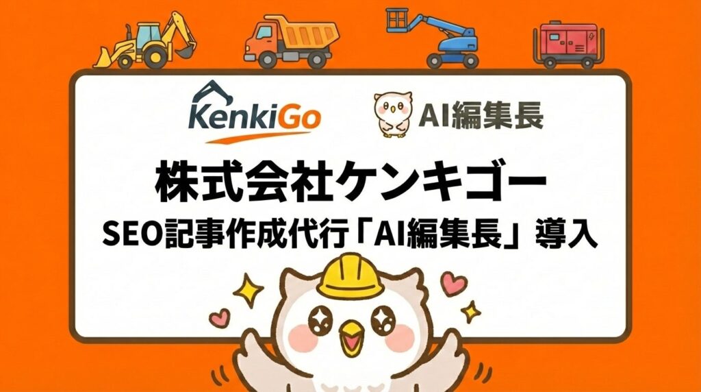 建設機械オンラインレンタルサービス「KenkiGo」を展開する株式会社ケンキゴーが、SEO記事作成サービス『AI編集長』を導入