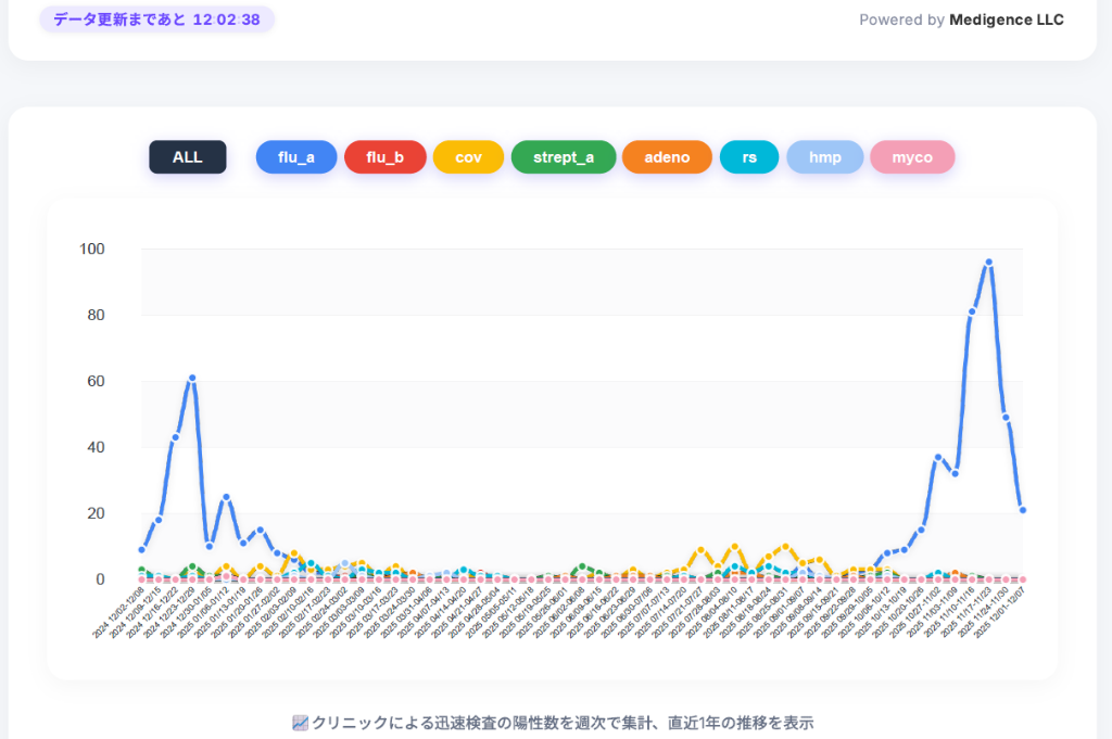 メディジェンス合同会社(神奈川県平塚市)は、ウイルス検査キットの結果をリアルタイムで集計・可視化するクラウドシステム「Nimbus(ニンバス)」の開発を本格化し、自治体・企業・研究機関向けにパートナー募集と実証実験の拡大を始めました。公的な感染症サーベイランスは医療機関の報告から公表まで通常1~2週間のタイムラグがある一方、現場では紙集計やExcel手入力が多く事務負担が課題です。Nimbusは検査結果(陽性・陰性)をAndroidタブレットで数タップ入力し、サーバー側で即時に集約、ダッシュボードでクリニック単位や地域単位の動向を一覧化します。複数疾患の同時表示や切替にも対応し、統計指標のz-score(平均との差を標準偏差で割った値)で「平年より多い」「急増」などの兆候検知を狙います。氏名や生年月日などの個人情報は扱わず、最小限の属性と検査結果に絞る設計としています。現在は代表の道海秀則氏が院長を務める藤沢せせらぎこどもファミリークリニックで稼働しており、今後は共同開発、資金支援、地域実装で連携先を広げ、全国の医療機関や自治体での活用を目指します。