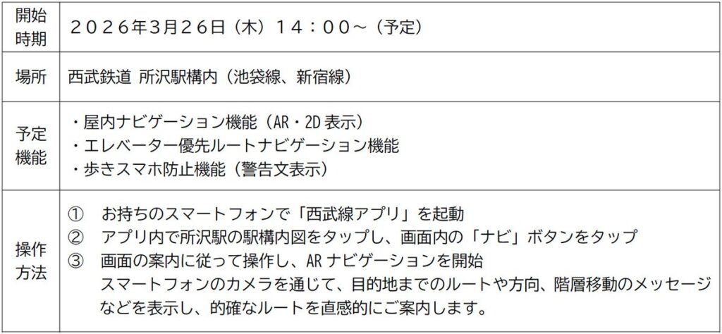 2026年3月26日(木)から所沢駅でARナビゲーションの技術検証を実施 ~駅構内のスムーズな移動を目指し、AR技術の活用に挑戦します~