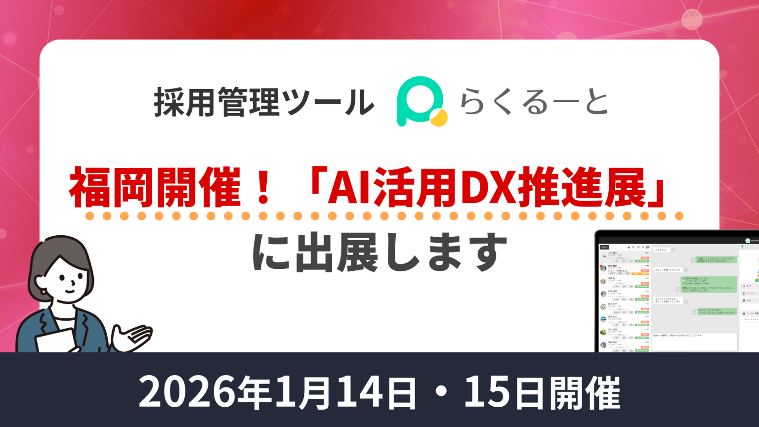株式会社アイシス(東京都渋谷区)は、2026年1月14日と15日に福岡市・天神のエルガーラホールで開かれる「第12回 解決市場『AI活用DX推進展』」に、採用管理ツール「らくるーと」を出展します。会場では「らくるーと×AI」を掲げ、採用業務でのAI活用の取り組みを紹介します。