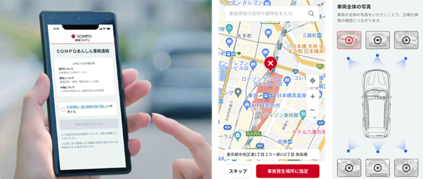 事故連絡の主な手段は電話やWEBフォームの文字入力で、現場の正確な場所や損害の度合いを伝えにくいケースが課題でした。新システムは位置情報と画像を併せて送れるため、連絡内容の精度向上が見込まれます。