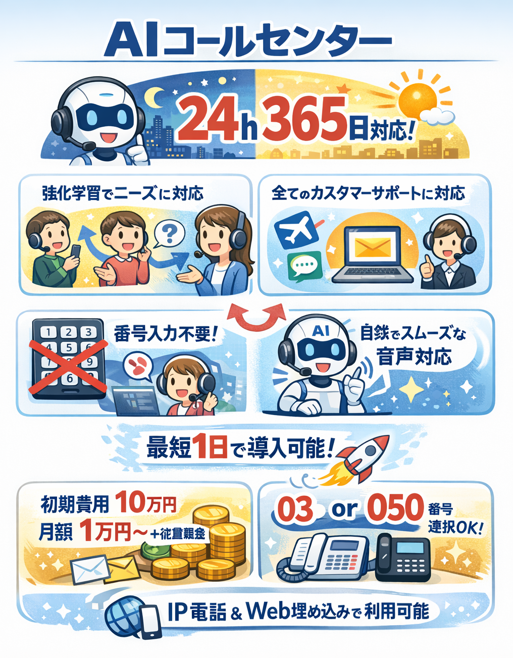 導入形態は、03/050の電話番号新規発行に加え、Webサイトに通話機能を埋め込むIP電話にも対応。人件費の上昇や採用難で応対体制が縮小しやすい業種で、省人化と対応時間の拡大が進むかが焦点となる。今後は学習精度と運用実績の積み上げが普及の鍵になりそうだ。