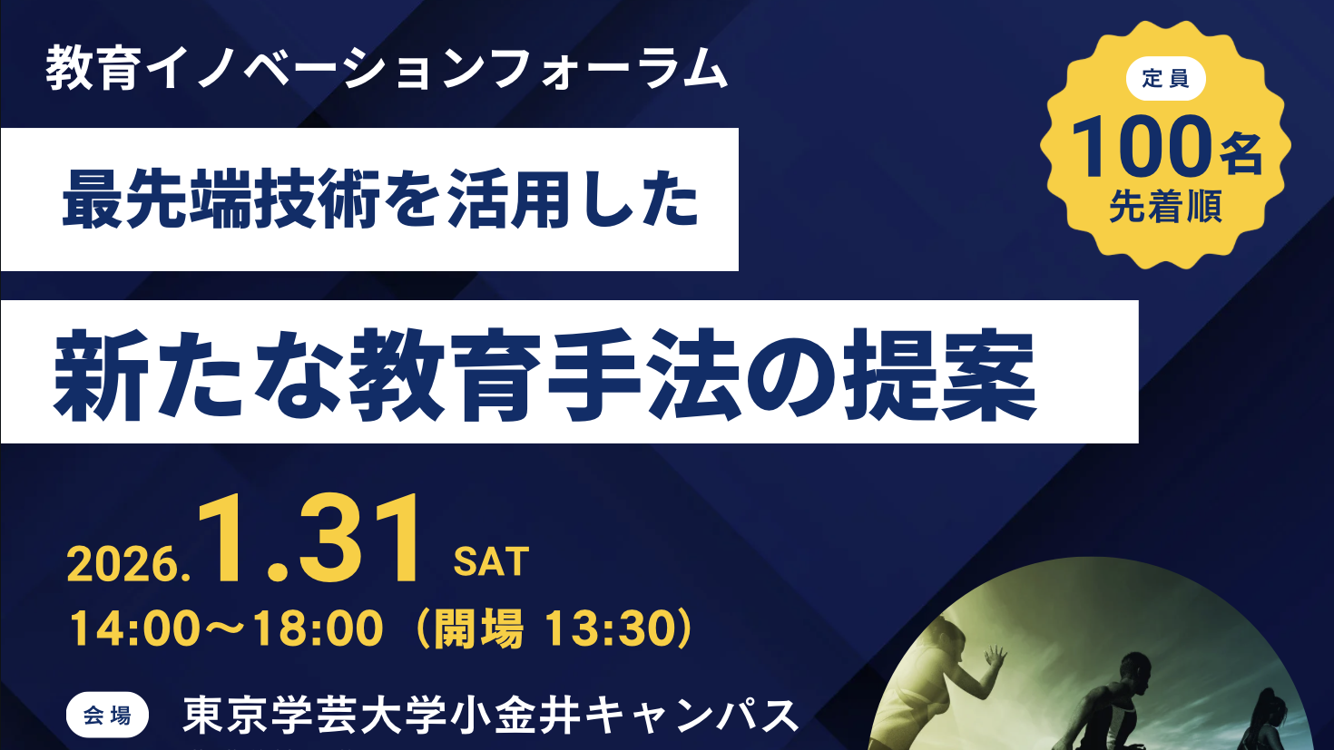 東京学芸大学は2026年1月31日14時~18時、同大小金井キャンパス北講義棟1階で公開イベント「教育イノベーションフォーラム2026」を開きます。AI・XR(現実空間に情報を重ねる技術)やデータ活用を、特に体育・身体活動領域の授業にどう生かすかを共有・体験する場で、参加費は無料です。取材(写真・動画撮影を含む)と一般参加はいずれも事前申込制です。