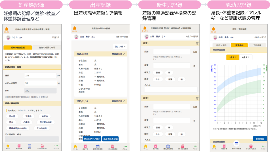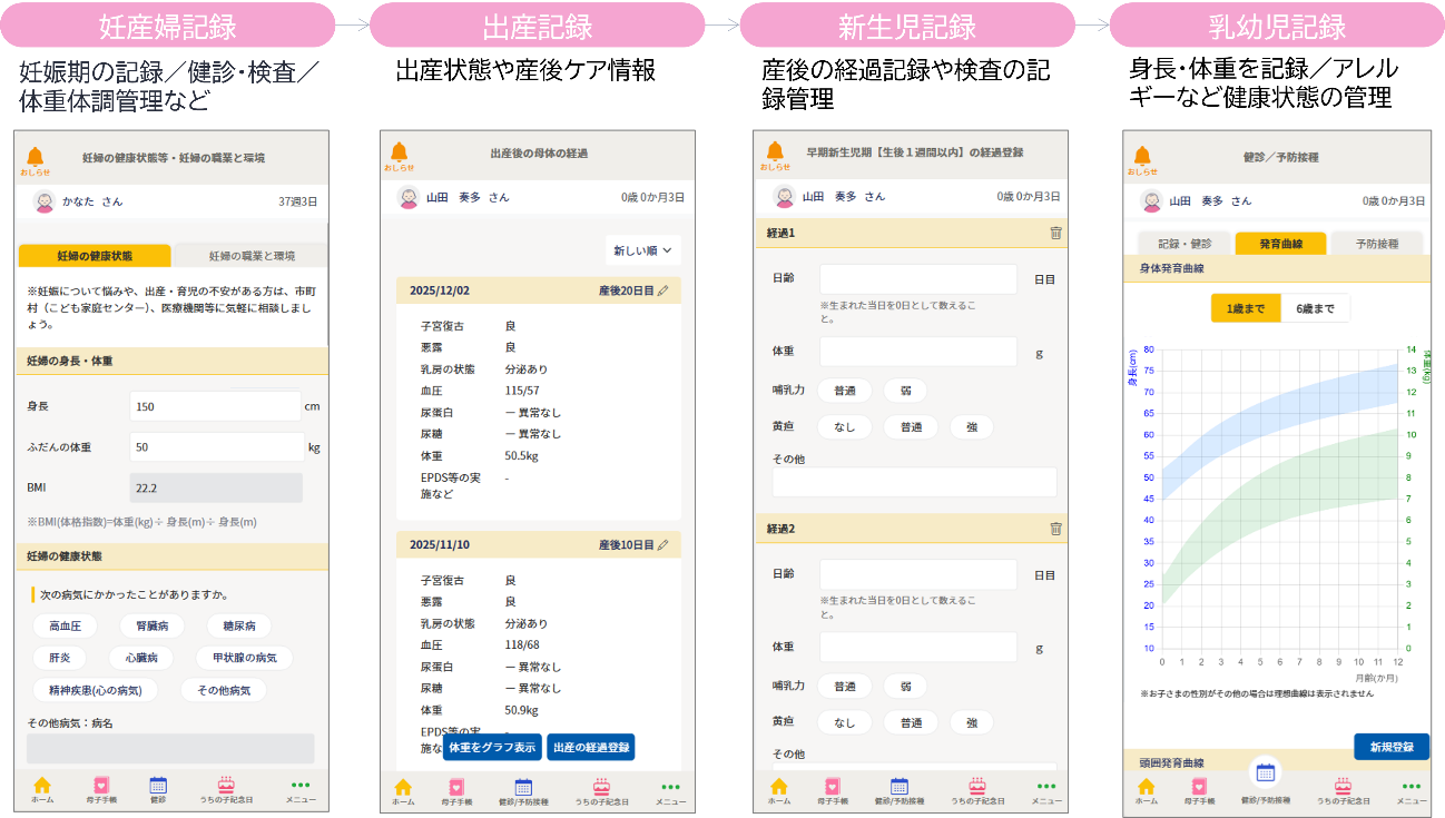 NECソリューションイノベータは1月15日、東京都と一般財団法人GovTech東京が進める実証事業として、東村山市に「デジタル健康手帳 母子健康手帳(デジタル母子健康手帳)」をトライアル提供します。期間は2026年1月15日〜3月31日で、妊婦と6歳以下の子どもを持つ保護者が対象です。Webアプリ「たのしむらやまポータル」と連携して使えます。アプリは妊娠・出産・育児の記録を写真やメモで残し、QRコードで家族共有も可能です。妊娠週数や月齢に応じた健診・予防接種情報、市からのお知らせ配信、支援施設や医療機関の検索にも対応します。妊娠届提出時などの紙資料をデジタル化して閲覧・検索でき、保管負担を減らします。さらにマイナンバーカードを活用してPMH(自治体と医療機関等をつなぐ情報連携基盤)と連携し、乳幼児健診結果や予防接種記録の自動反映、通知による受け忘れ防止を狙います。処方薬情報の登録管理や「おくすりアラーム」も盛り込みました。実証結果を踏まえて機能を調整し、2026年春からの提供開始を予定しています。
