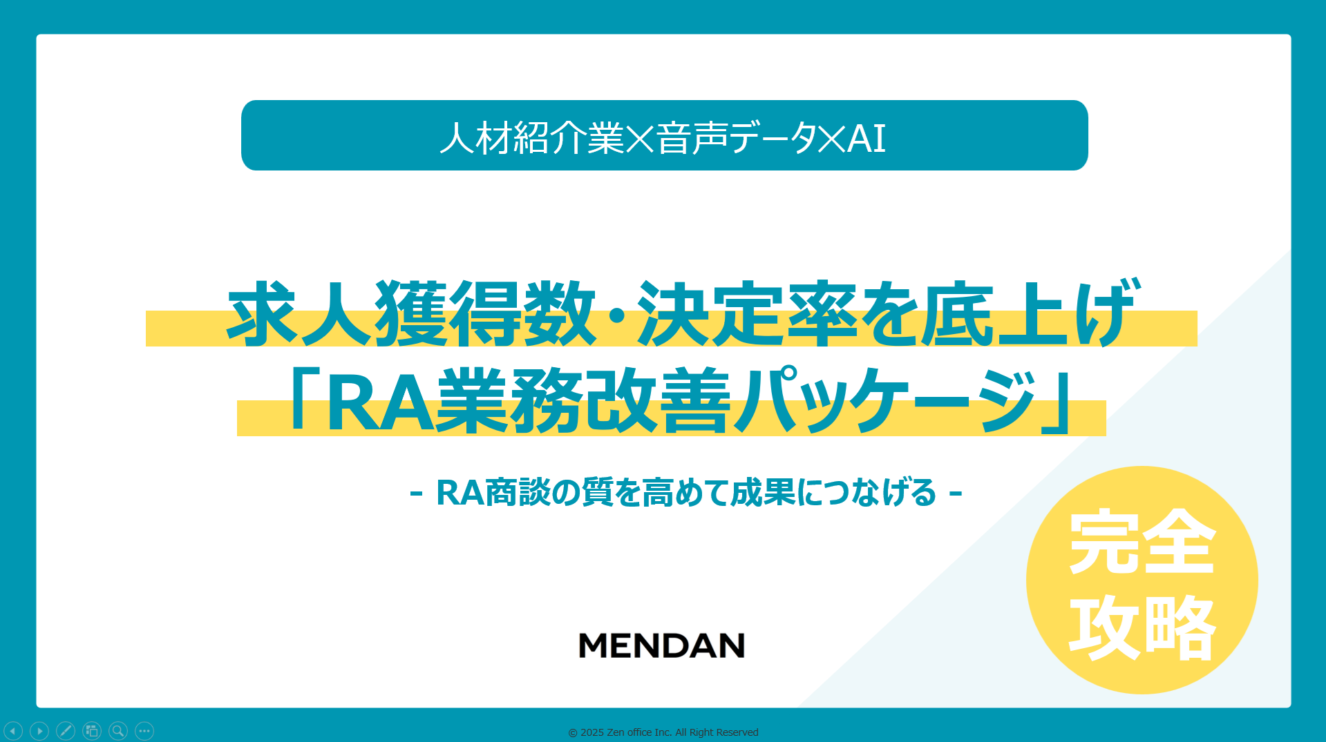 人材紹介向けの音声AIエージェント「MENDAN」が、RA(リクルーティングアドバイザー)業務に特化した新パッケージの提供を開始しました。導入先では、RA人数が1名減った状況でも月間の求人獲得数が前年比36%増、一次面接から決定までの通過率は4%改善。商談音声の解析により案件の優先度付けとクロスセル機会の抽出、求人情報の高度データ化を自動化します。