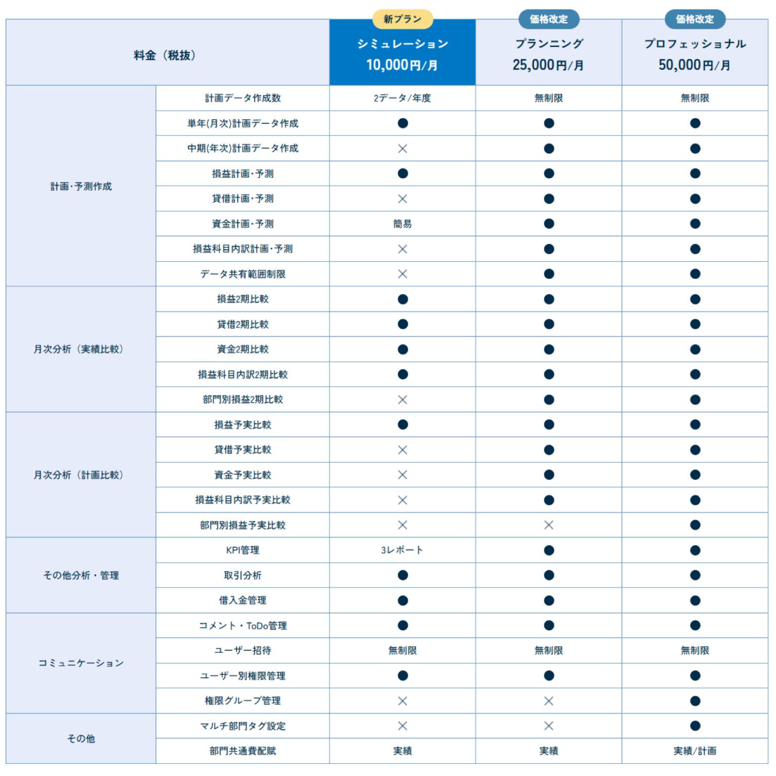背景として、会計事務所経由に加えて一般企業への直接提供が本格化し、導入企業規模の拡大とともに予実管理(予算と実績の差を管理)や分析、意思決定支援の高度化ニーズが増加しました。同社はインフラ基盤強化、機能拡充、サポート体制の充実など継続投資を踏まえ、安定した品質と価値提供の継続を理由に挙げています。