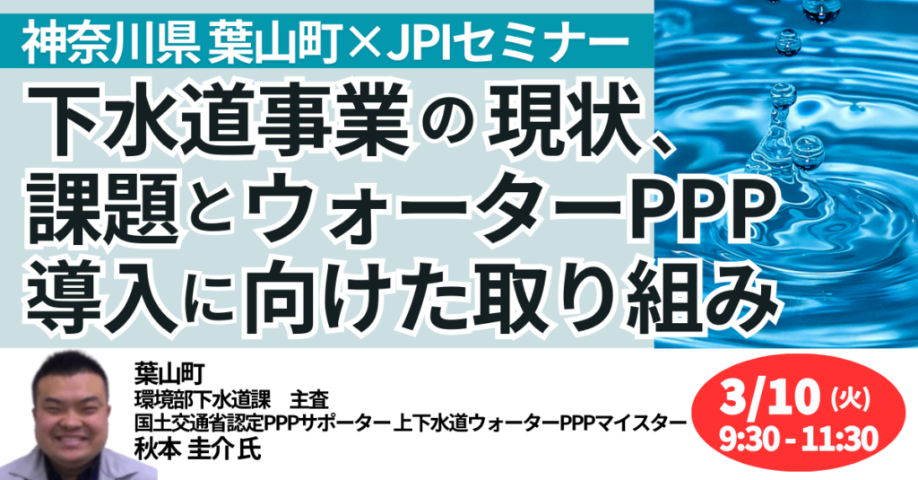 セミナータイトル:小規模自治体が挑む、新たな官民連携/神奈川県葉山町における下水道事業の現状、課題とウォーターPPP導入に向けた取り組み