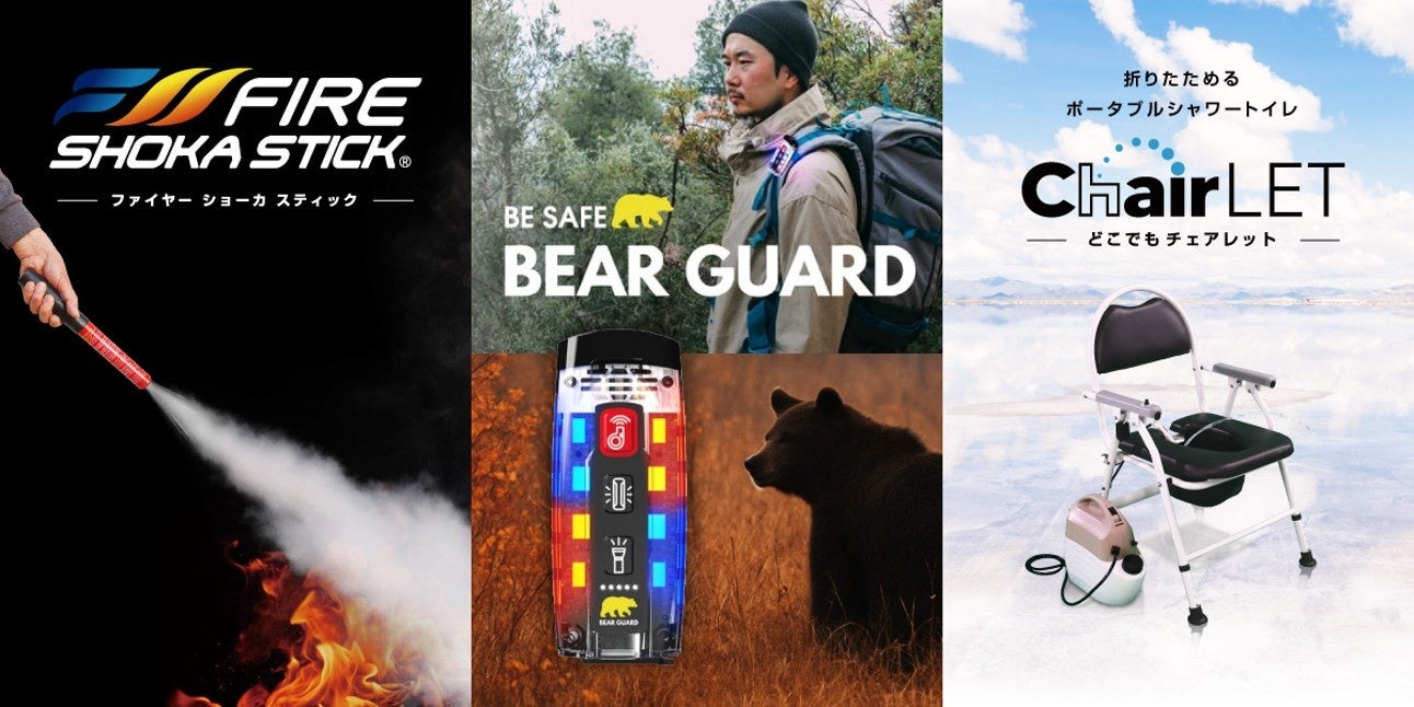 同展はSDGs達成に向けた国内最大級の展示会で、2025年は450社・団体が861小間規模で出展します。TCLは、365gと軽量で不活性ガスにより周囲を汚さず初期消火を行える「ファイヤーショーカスティック」のほか、110dBの警告音と高輝度LEDでクマを威嚇する新製品「ベアーガード」、折りたたんで保管できるおしり洗浄機能付き簡易トイレ「どこでもチェアレット」を展示します。